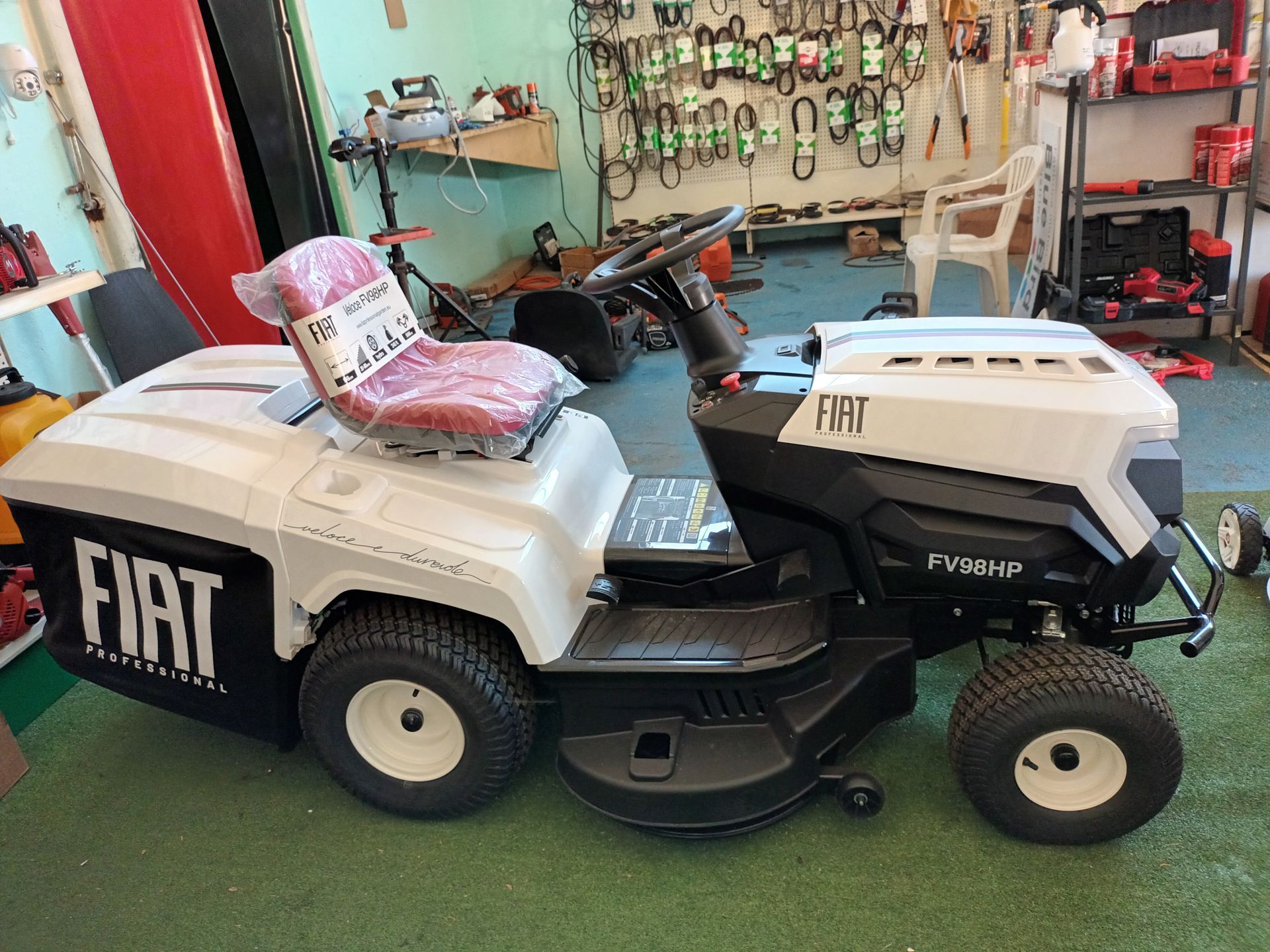 Tutti i modelli sono dotati di regolazione dell’altezza di taglio e di cesto raccogli erba; i modelli super professionali sono dotati di cambio a tre velocità.
