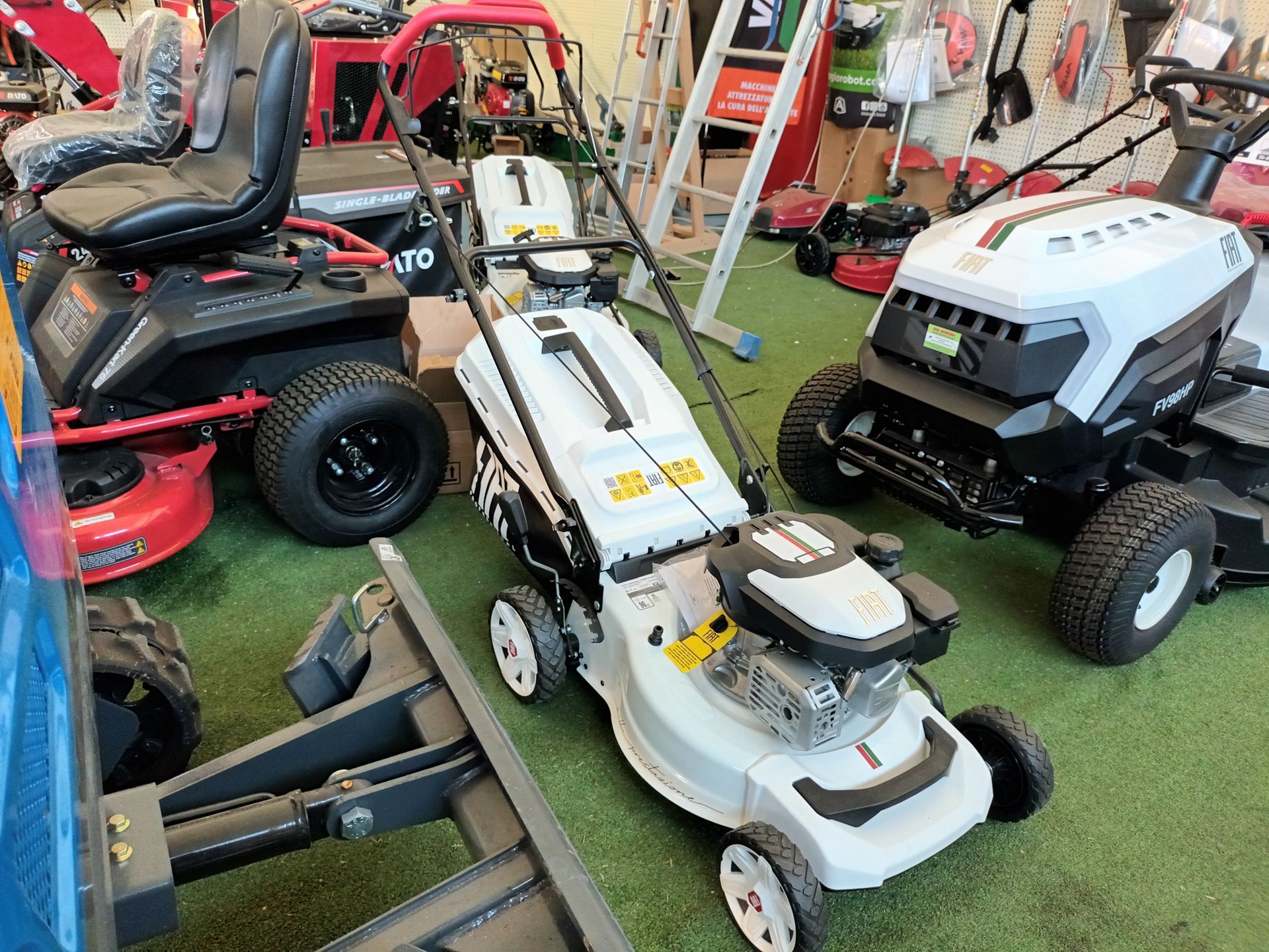 Si passa poi ai rasaerba con scocca in lamiera o alluminio, che garantiscono grande affidabilità e qualità di taglio in tutte le situazioni e con superfici fino a 3.000 metri.
